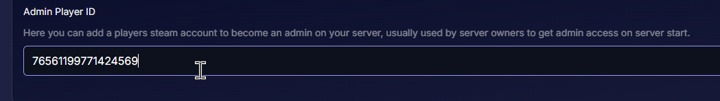 Insert your SteamID/PSN ID or XboxID in the “Admin Player ID” variable.
