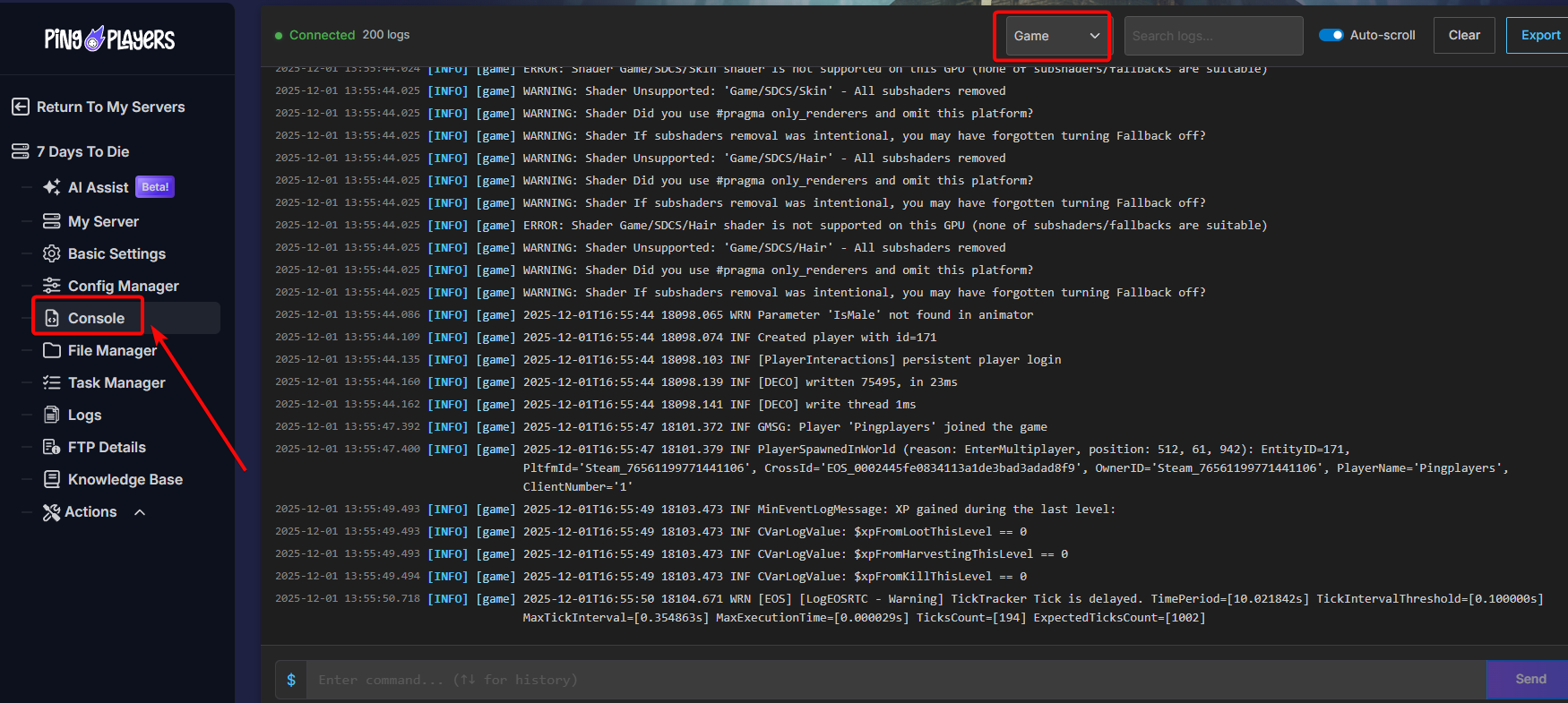 First, you'll need to log into your PingPlayers account and navigate to your server control panel. Once you're logged in, locate the section labeled "My Servers," which will show you the servers you've set up.