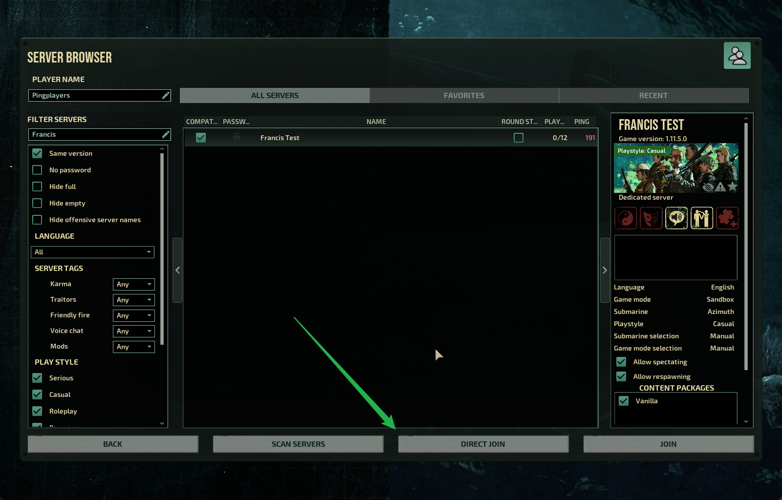 Welcome to the unforgiving depths of Europa! Getting your crew together on your Barotrauma server is quick and easy. Players have two options to connect: they can either search for your server's name in the public list or connect directly using your server's IP address and port.