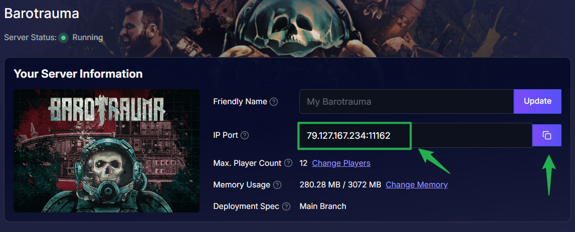 If your server isn't showing up in the browser, or if you prefer a faster, direct route, you can connect using your server's IP and Port (which can be found on your Server Panel dashboard).