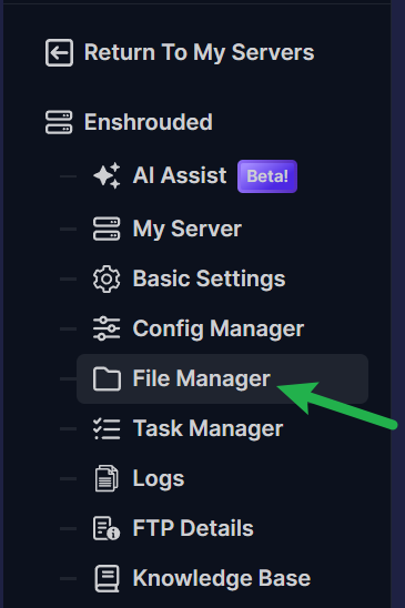 Now, let's go to your server's File Manager to find the file name the server is hard-coded to load.