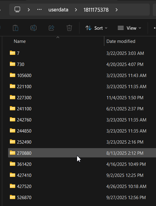 - Open your SteamID3/Friend Code folder and find the folder for Enshrouded: