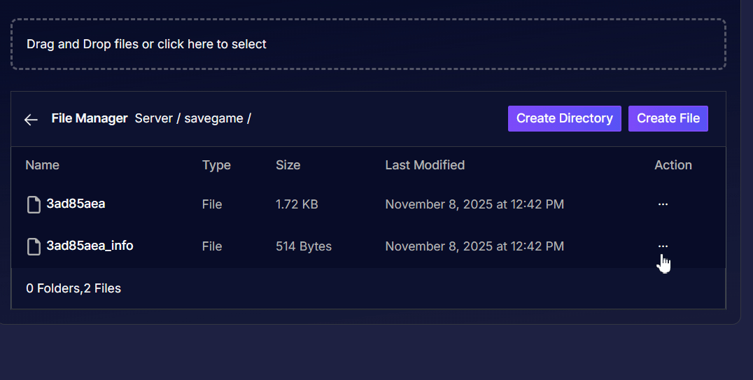 enshrouded server/savedata/folder in your File Manager, upload your local world files from Part 1 by dragging and dropping it to the Upload Bubble above the file path.