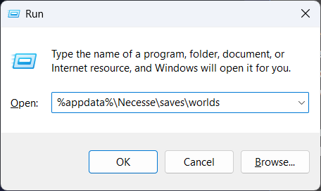 C:\Users\USER\AppData\Roaming\Necesse\saves\worldsor run the command%appdata%\Necesse\saves\worlds.
