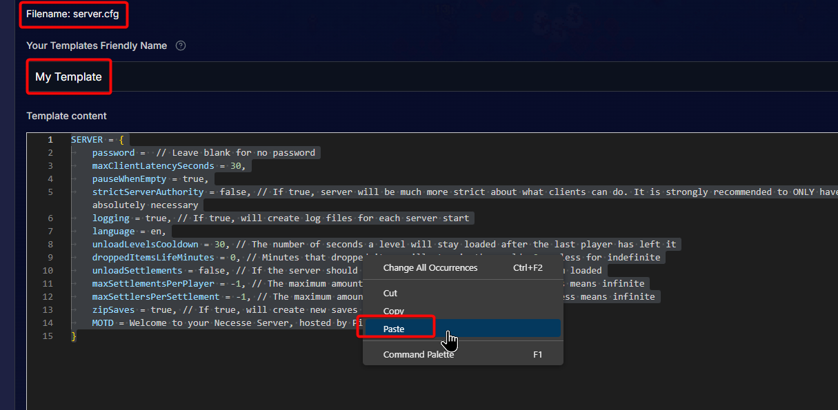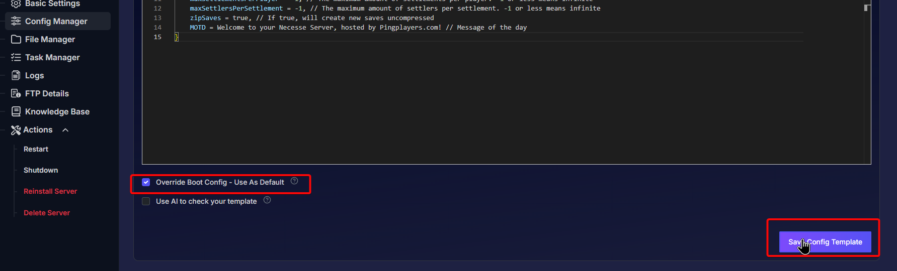 server.cfgfile and create a new template in Config Manager to replicate the same settings.