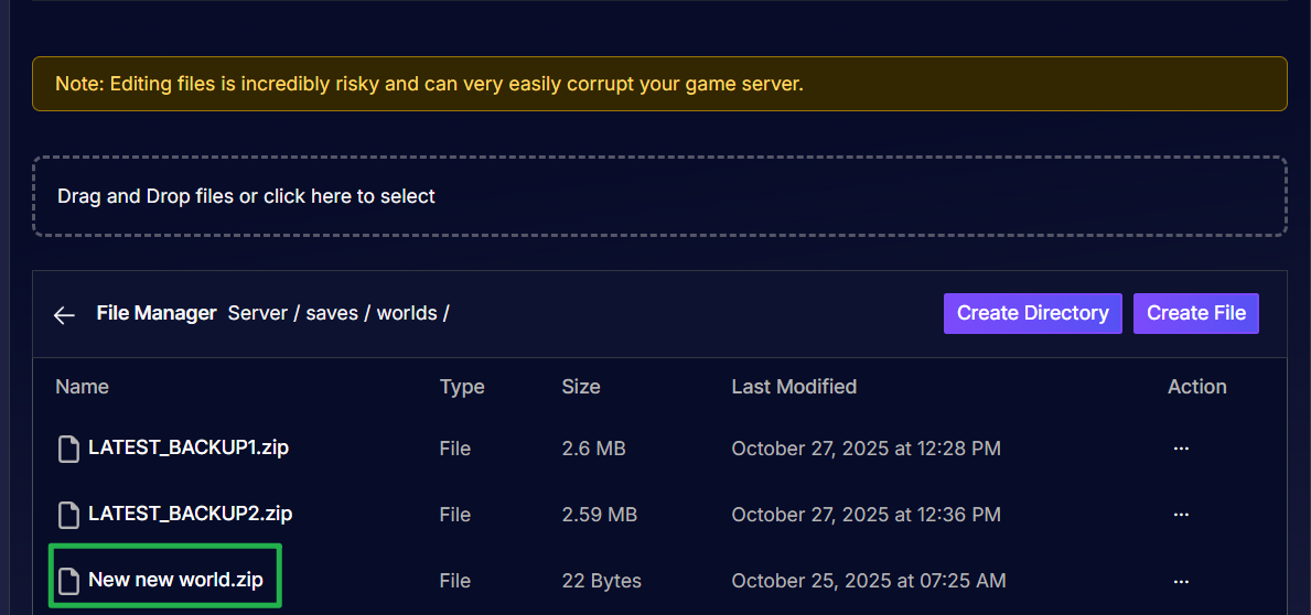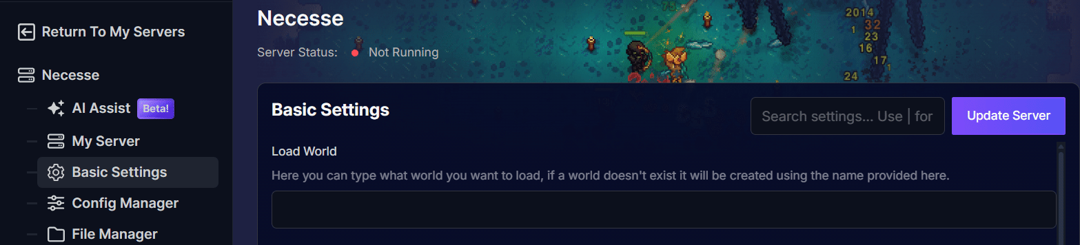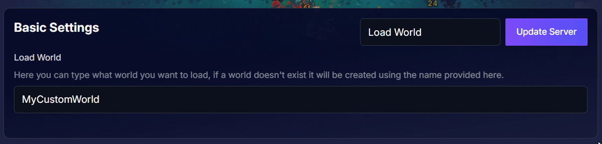 Remember, your original world file (e.g., world.zip) is still safe on your server. If you ever want to switch back, just go to your Basic Settings, change the Load World name back to world, and restart!