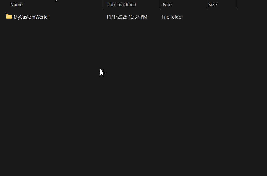 MyCustomWorldfolder into a new.zipfile. It must now be namedMyCustomWorld.zip.