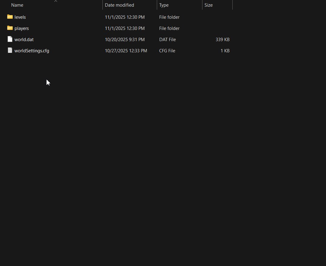 worldfolder. Inside, you will find theworldSettings.cfgfile.