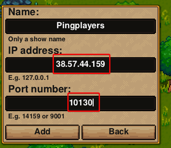 You will need to fill in the server details. Write a name for your server (this can be anything you like, it’s just an identifier), then paste your IP address and port number in the respective fields. After that, click “Add.”