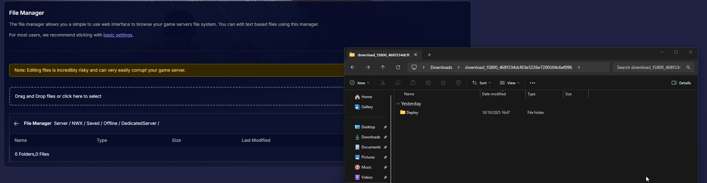 Once inside your “DedicatedServer” folder, download the entire “Deploy” folder as it contains all the saved progression.