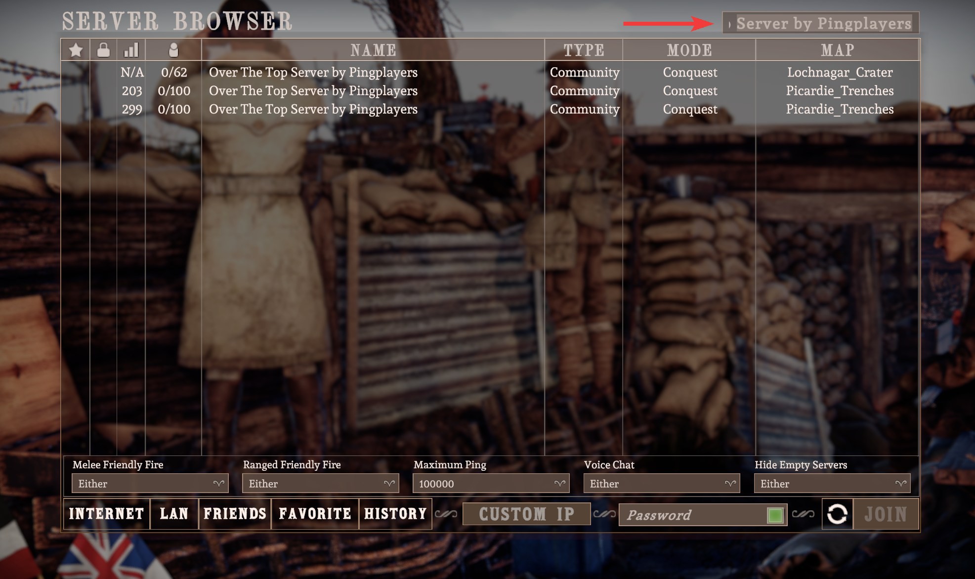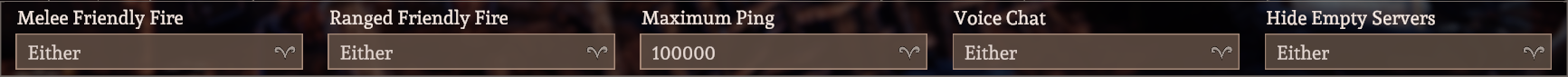 Use filters if needed, such as melee or ranged friendly fire, ping, voice chat or empty servers to narrow the results.