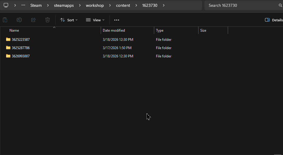 - Inside this folder, you will see folders with numerical names (these are the Steam Workshop IDs for your mods)