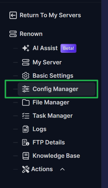 - Go to the Config Manager on your server panel.
