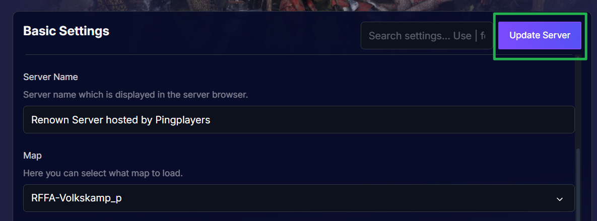 - Navigate to your server's Basic Settings.