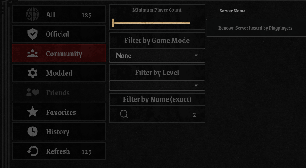 - I can’t find my server even after refreshing and it’s shown on PingQuery: Try changing the server type back to All and then back to Community; hit Refresh again. If it still doesn’t show, make sure the name is exactly the same by copying and pasting it from PingQuery.