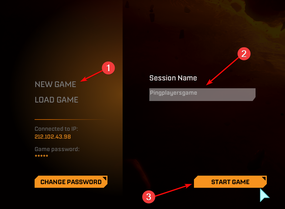 Create a new game session (it takes 10 seconds or so).