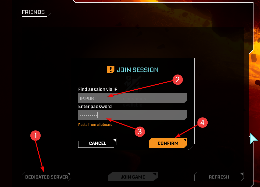 - Go to Join Game and click on Dedicated Server.