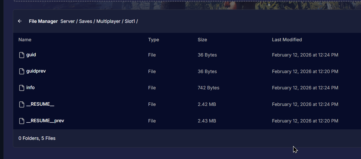 In the savesMultiplayer folder, you will see multiple folders named slot1 to slot5. Each folder corresponds to a different save slot. Download the folder that matches the save slot your game is currently using (e.g., if you’re using slot 1, download slot1). This folder holds the player save data.