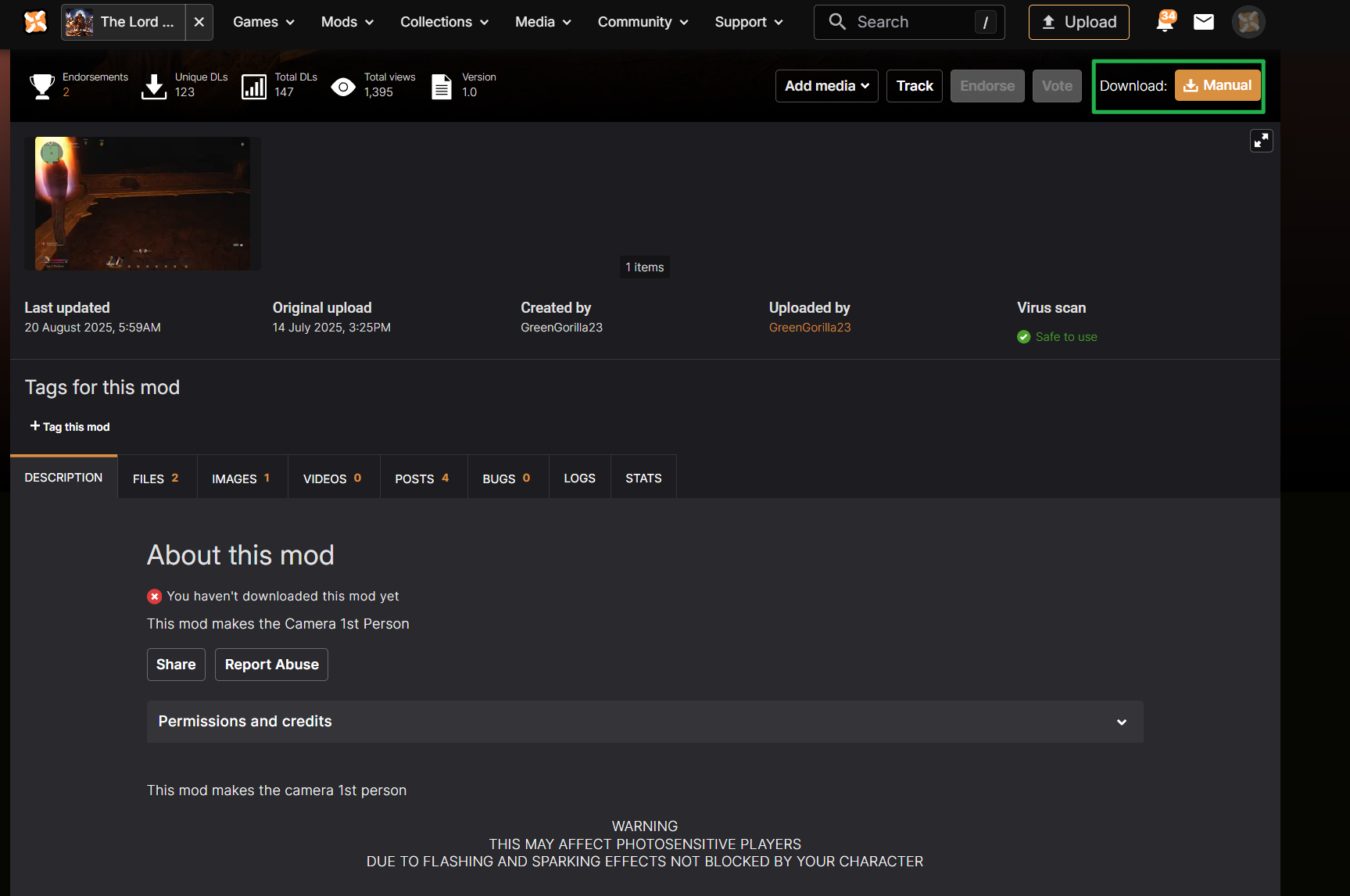 - Download the Mod: Find the mod you want on Nexus Mods. Download the file, which will usually be a