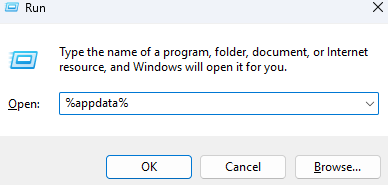 Once here, type “%appdata%" and press Enter. It should open a folder in your screen.
