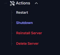 Click on “Actions” > “Shutdown” on the left panel, in the server's configuration panel.